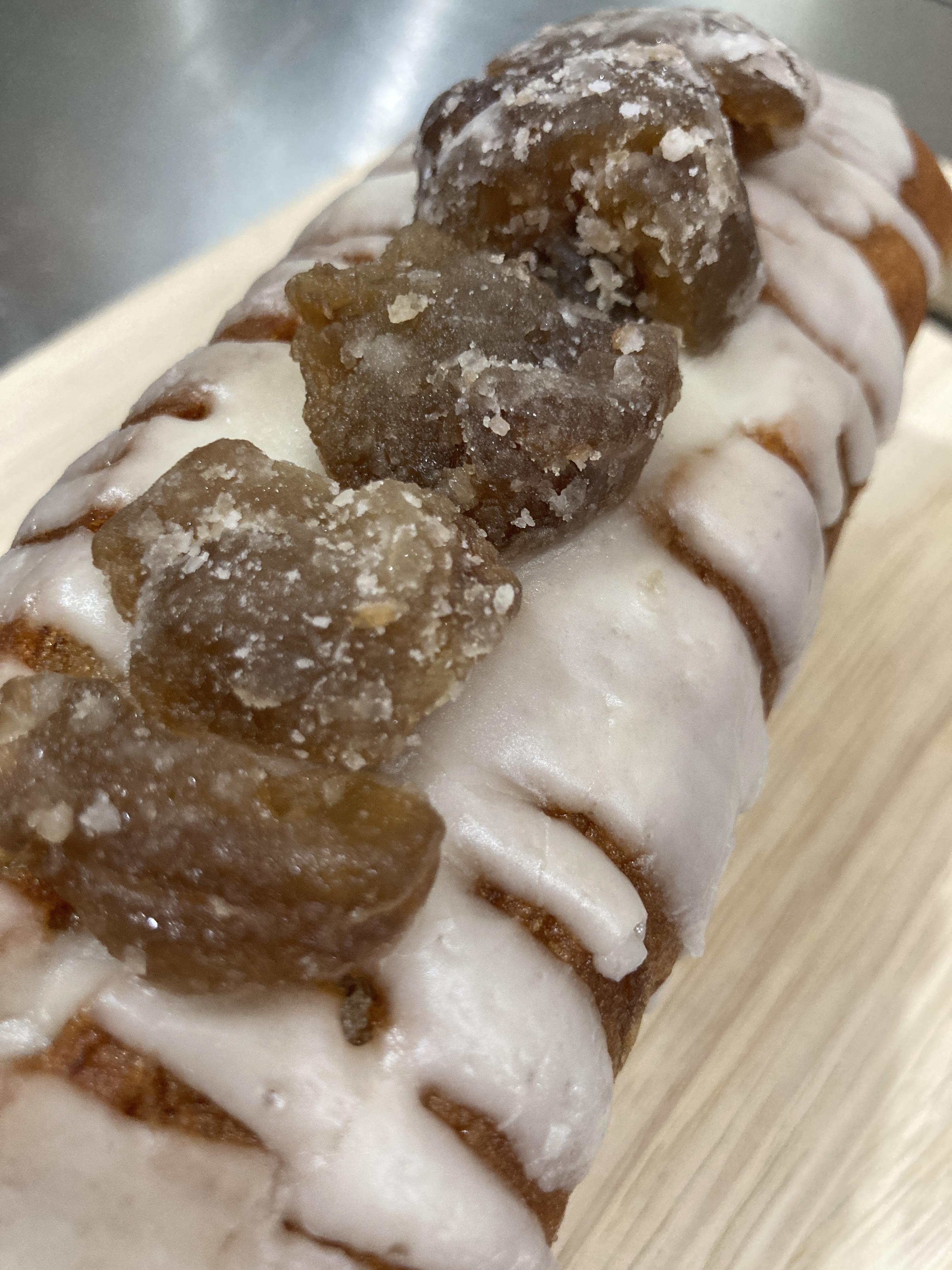 栗のペーストを練り込んだ生地にイタリア産栗のマロングラッセをたっぷり使いました。